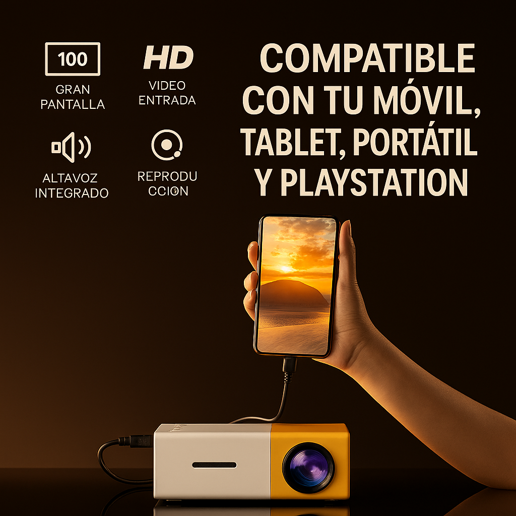 Con este mini proyector portátil, cada momento se convierte en una experiencia única: noches de cine en familia, maratones con amigos o sesiones de juegos como nunca antes.